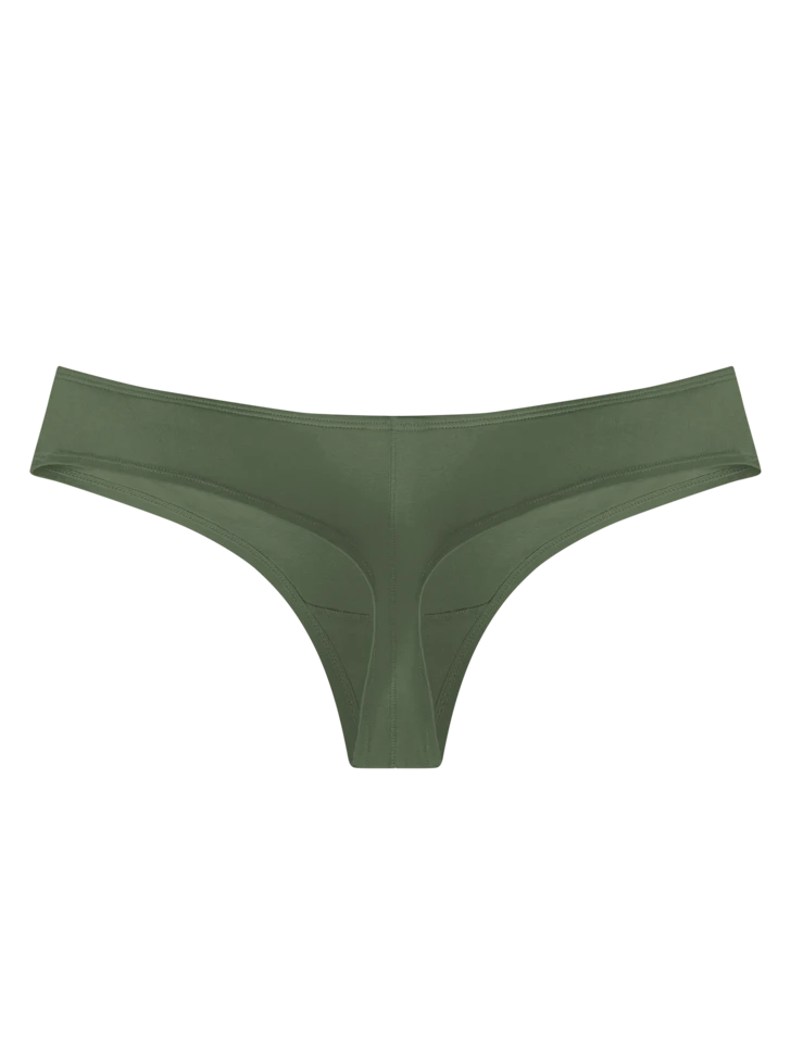 Minimalistisches Design, hochwertige Baumwolle und ein schmeichelhafter Schnitt – genau das sind unsere brasilianischen Schlüpfer. Wenn du auch Grün magst, dann sind diese efeugrünen brasilianischen Damenschlüpfer wie für dich geschaffen.