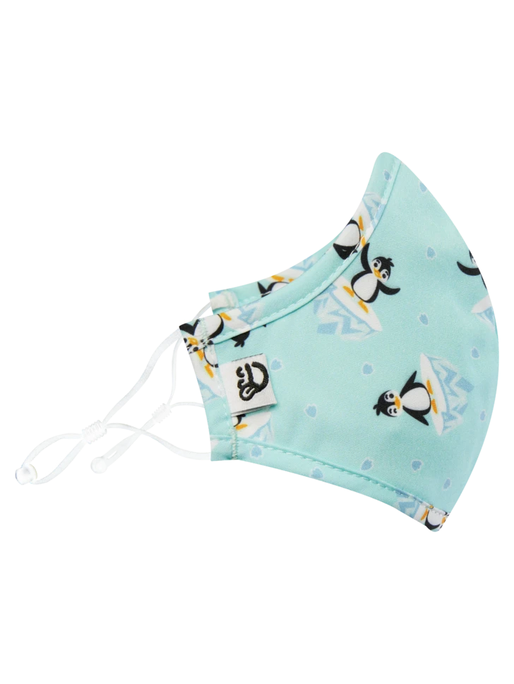 Unser fröhlicher Pinguin sorgt für ein fröhliches Lächeln. Dieses Lächeln wird sich unter der lustigen antibakteriellen Gesichtsmaske für Kinder verbergen, aber die fröhlichen kleinen Augen werden es schon verraten.