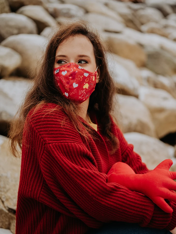 Schütze deine Gesundheit und die Gesundheit anderer Menschen und versprühe gleichzeitig Freude mit einer mit Herzen bedeckten lustigen antibakteriellen Gesichtsmaske.