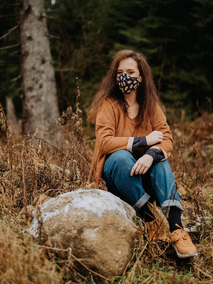 Nutzung: Wasche dir die Hände gründlich mit Wasser und Seife, bevor du die Maske anfasst. Setze die Maske über Nase und Mund und ziehe dann die Bänder um die Ohren. Achte darauf, dass sie deine Nase und deinen Mund bedeckt und dass der untere Rand unter deinem Kinn endet. Falls die Maske zu eng oder zu locker sitzt, stelle mit den Längenverstellern die gewünschte Länge der Bänder ein.