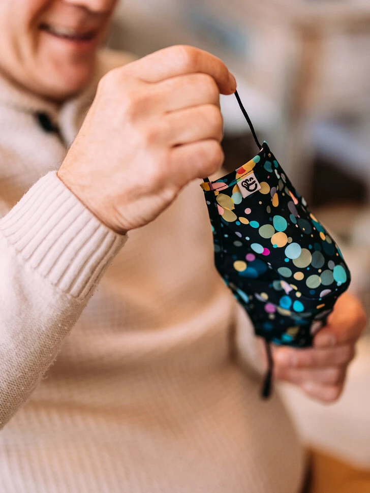 Nutzung: Wasche dir die Hände gründlich mit Wasser und Seife, bevor du die Maske anfasst. Setze die Maske über Nase und Mund und ziehe dann die Bänder um die Ohren. Achte darauf, dass sie deine Nase und deinen Mund bedeckt und dass der untere Rand unter deinem Kinn endet. Falls die Maske zu eng oder zu locker sitzt, stelle mit den Längenverstellern die gewünschte Länge der Bänder ein.
