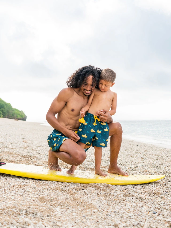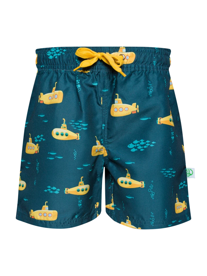Captain, ich kann links eine Klippe ausmachen! Mag dein Kleiner U-Boote? Dann sind diese lustigen Badeshorts für Jungen mit einem gelben U-Boot genau das Richtige für ihn. Recyceltes Polyester, tolle Saugfähigkeit und leuchtende Farben sind die richtige Wahl für jeden kleinen Kapitän.