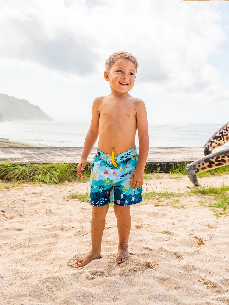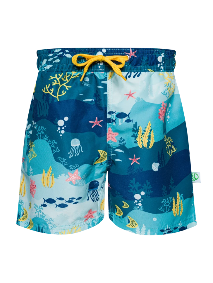 Sommer und Wasser gehören zusammen. Besorge deinem Kleinen ein Paar dieser lustigen Badeshorts für Jungen und sorge dafür, dass er beim Spielen am Strand den perfekten Komfort erlebt. Der Badeanzug nimmt Feuchtigkeit gut auf, fühlt sich angenehm an und das fröhliche Thema der Korallenwelt wird alle Kinderaugen zum Strahlen bringen.