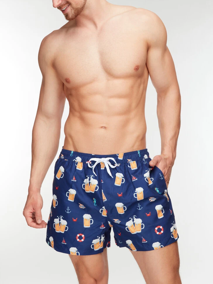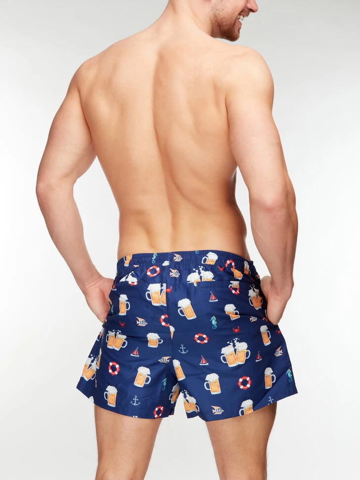 Egal ob auf einer Yacht oder auf deinen Badeshorts, ein Glas Bier wird dich immer zum Strahlen bringen. Zieh dir diese lustigen Badeshorts für Männer an und mach dich auf zu einer abenteuerlichen Seefahrt voller Spaß.