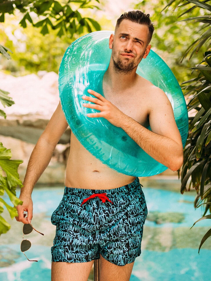 Erfrische dich an heißen Sommertagen mit den originellen lustigen Badeshorts für Männer, mit denen du dich von der Masse abhebst, egal wo du auftauchst. Sie sind aus recyceltem Polyester hergestellt, das sowohl im Wasser als auch an Land für optimalen Tragekomfort sorgt und gleichzeitig deine Haut vor UV-Strahlen schützt. Sei diesen Sommer umweltbewusst und trendy mit den lustigen Badeshorts für Männer. Wähle einfach ein passendes Motiv zu deiner Stimmung.