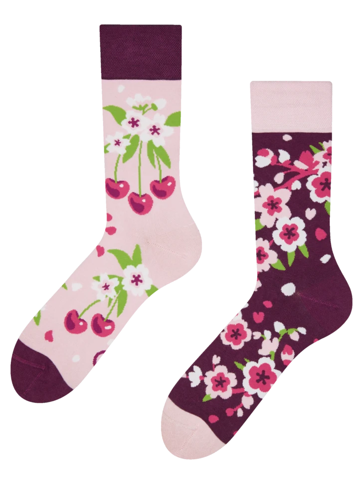 Kirschblüten sind ein Symbol des Frühlings. Ganz gleich zu welcher Jahreszeit, bringe mit diesen lustigen Bambussocken einen Hauch von Frühling in deinen Kleiderschrank.