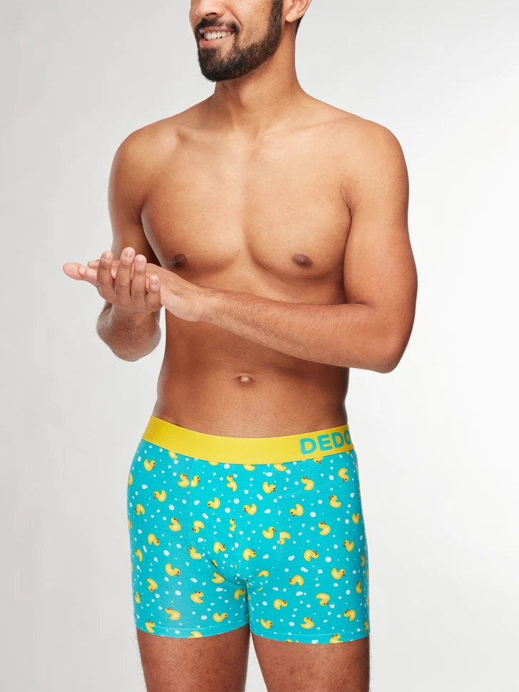 Genug von langweiliger Unterwäsche! Nutze bunte Muster, die sofort für gute Laune sorgen. Die lustigen Boxershorts für Männer Captain Duck erfüllen diese Aufgabe auf jeden Fall