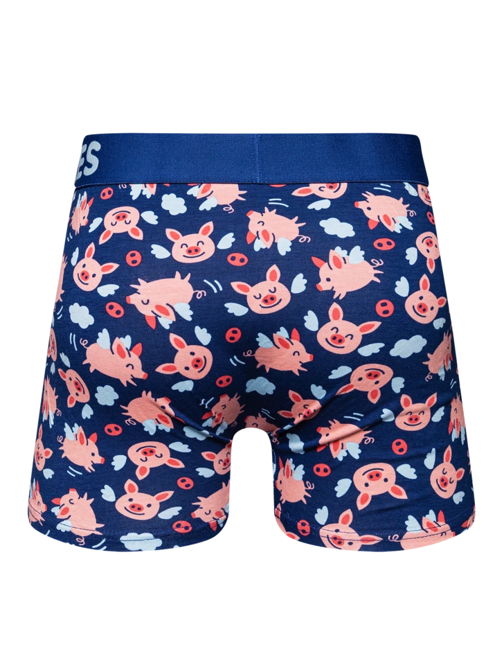 Glaubst du, dass der Traum aller Ferkel ist, einen Tag lang Flügel zu haben, in den Himmel zu fliegen und die Sterne anzuschauen? Dann können sie sich wenigstens mit diesen lustigen Boxershorts für Männer ihren Traum erfüllen.