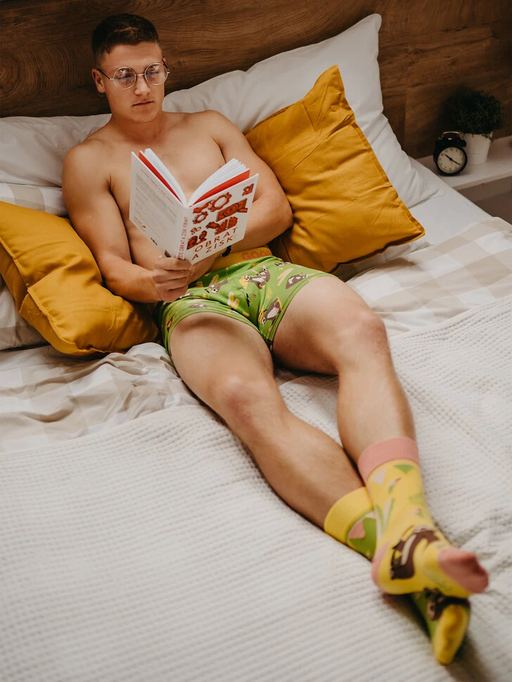 Suchst du nach einem einfachen Trick, um gut gelaunt aufzuwachen? Ziehe unsere lustigen Boxershorts an und genieße jeden Tag wunderschöne Vormittage! Ihr originelles Design zaubert sofort ein Lächeln auf deine Lippen, und die hochwertige Baumwolle sorgt für einen optimalen Komfort auf deiner Haut.