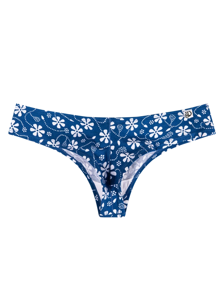 Die Technik der Blaudruckfärbung hat ihren Ursprung im 18. Jahrhundert. Wir bringen dir auf diesen lustigen brasilianischen Schlüpfer für Frauen seine moderne Version.