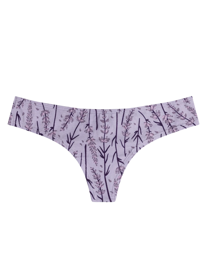 Lavendel ist eine beliebte Heilpflanze. Sie wird seit Jahrhunderten bei der Herstellung von Parfüms und Kosmetika verwendet. Wir haben diese Wunderpflanze auf unsere lustigen brasilianischen Schlüpfer für Frauen gesetzt, damit sie Freude und Wohlbefinden bringen.