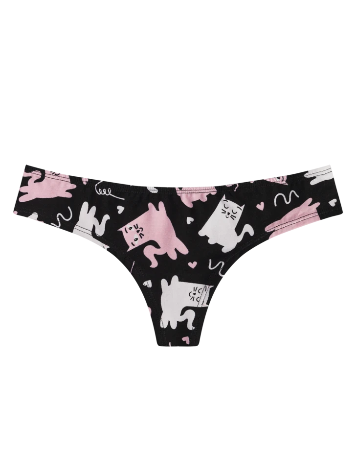 Hast du gewusst, dass Katzen 22 Stunden am Tag schlafen können? Wenn du Katzen liebst, wirst du diese lustigen brasilianischen Schlüpfer für Frauen garantiert mögen. Zeige deine Weiblichkeit und fühle dich rund um die Uhr wohl.