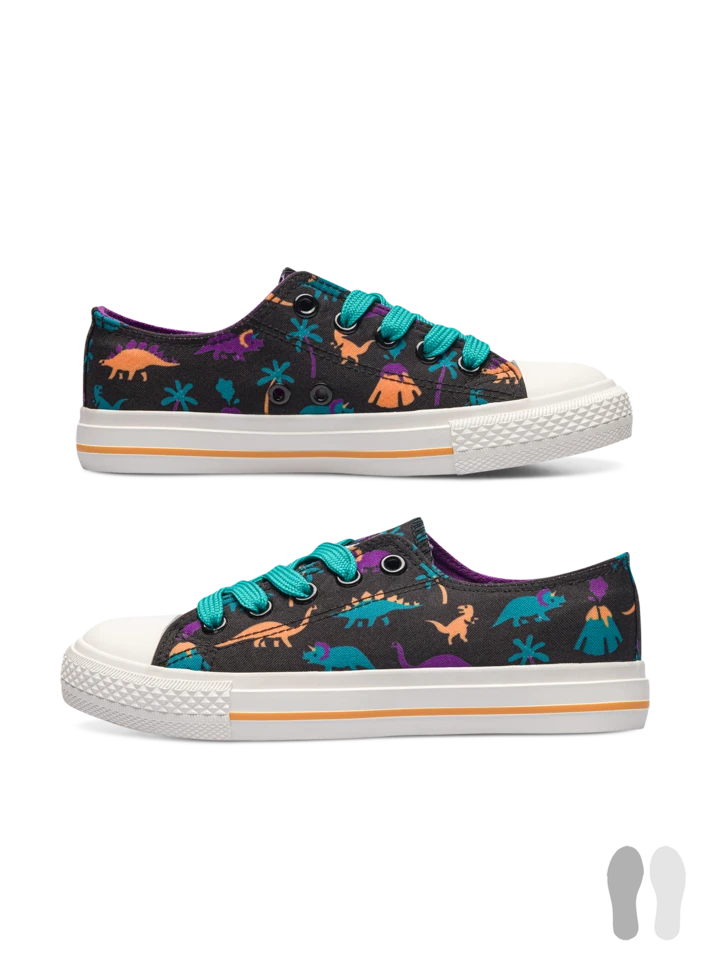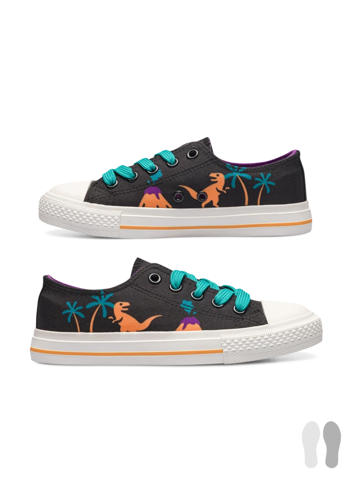 Viele Wissenschaftler sind der Meinung, dass es noch zahlreiche Dinosaurier gibt, die erst noch entdeckt werden müssen. Hast du auch einen kleinen Entdecker zu Hause? Verwöhne sie mit lustigen Canvas-Schuhen für Kinder, die aus bequemem und atmungsaktivem Material gefertigt sind. Darüber hinaus gibt es in der Packung zwei Paar Schnürsenkel, aus denen du wählen kannst.