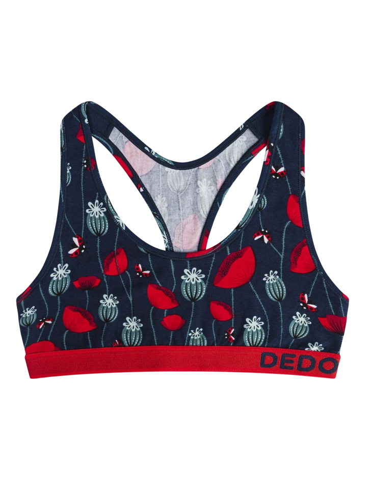 Was haben Marienkäfer und rote Mohnblumen gemeinsam? Ihre Farben – rot und schwarz. Falls du dich in dieser Farbkombination ebenfalls am wohlsten fühlst, dann ist diese lustige Bralette für Frauen wie für dich geschaffen.