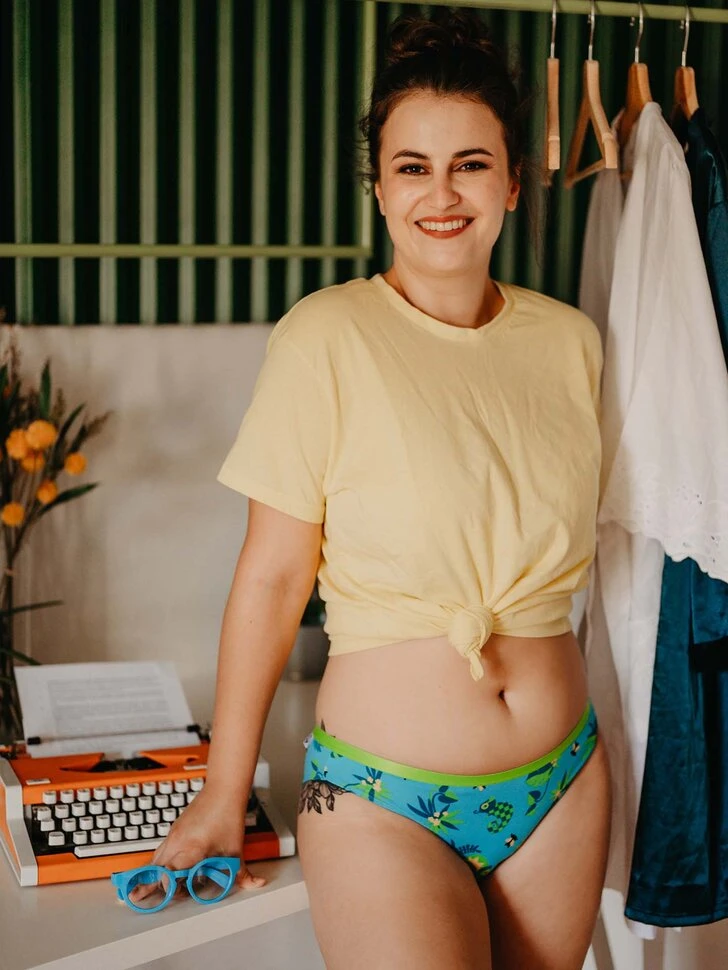 Chamäleons sind faszinierende Tiere. Sie können die Farbe ihrer Haut ändern, um sich der Umgebung anzupassen. Willst du dein Outfit auch etwas bunter gestalten, damit es zu deiner fröhlichen Stimmung passt? Zieh diese lustigen Höschen für Frauen an!