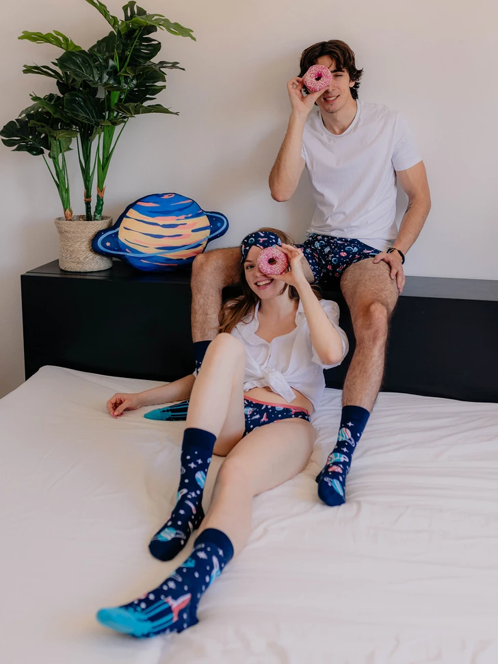 Das Universum ist unendlich und genauso unendlich wird deine Freude sein, wenn du diese lustigen Höschen für Frauen anziehst. Sie sind bequem, fühlen sich weich an und ihr lustiges Design wird jeden Erdling begeistern.