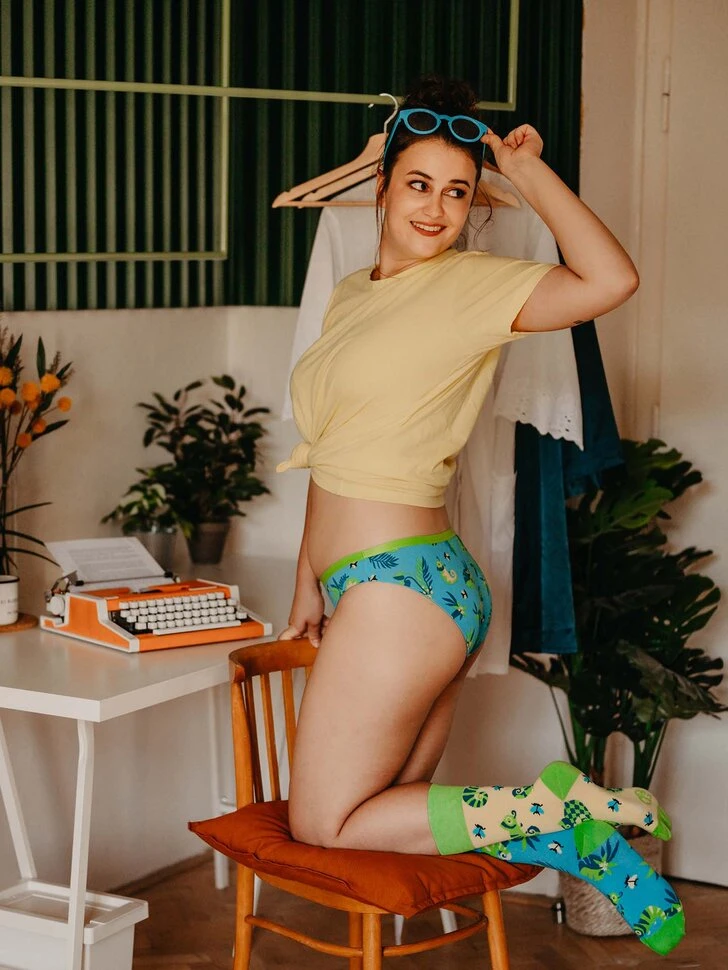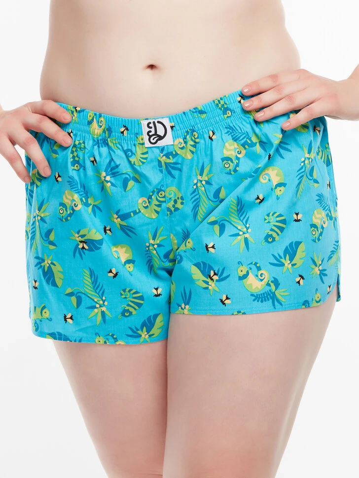 Chamäleons sind faszinierende Tiere. Sie können die Farbe ihrer Haut ändern, um sich der Umgebung anzupassen. Willst du dein Outfit auch etwas bunter gestalten, damit es zu deiner fröhlichen Stimmung passt? Zieh diese lustigen Shorts für Frauen an!