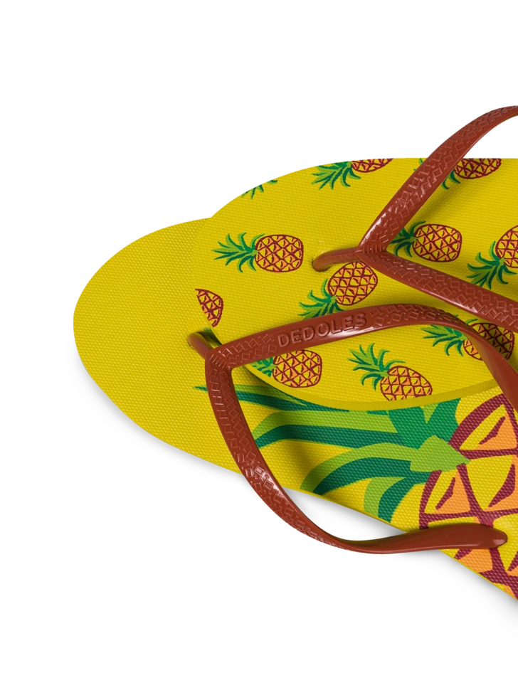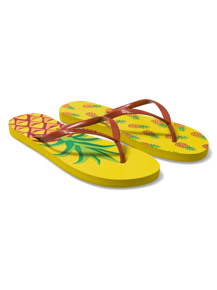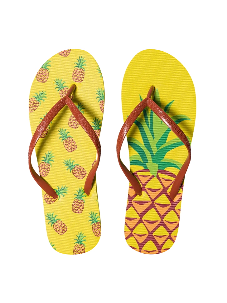 Es gibt nicht viele Früchte, die Sommergefühle wecken, außer der Ananas. Du findest diese tolle Sommerfrucht auf unseren lustigen Flip-Flops. Zieh sie an und zeige überall deinen Stil.