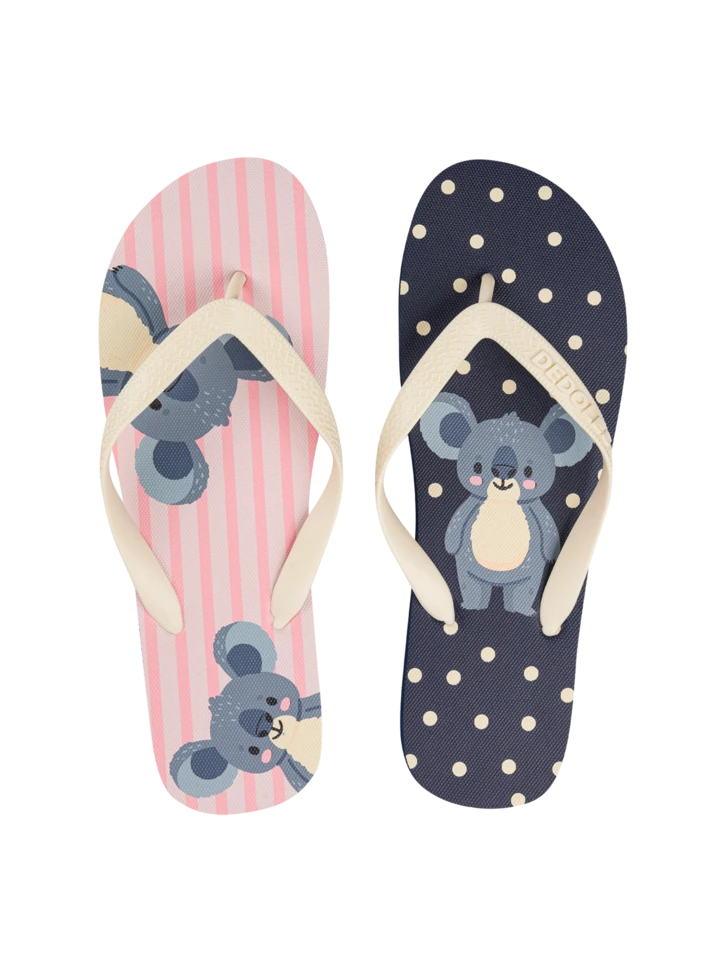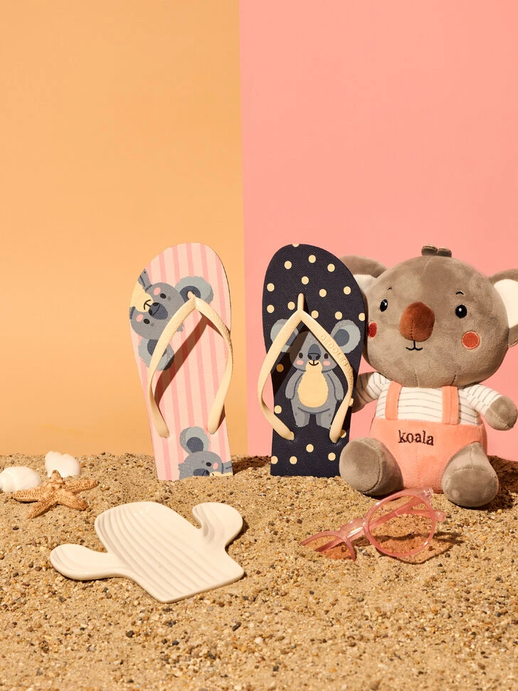 Koalas sind niedliche Tiere und schlafen bis zu 18 Stunden am Tag. Bist du auch eine Koala-Seele und würdest deine Tage am liebsten im Schatten eines Baumes verbringen? Die Strand-Flip-Flops von Dedoles mit dem Motiv dieser einzigartigen Kreatur werden dich zur ersehnten Entspannung führen.