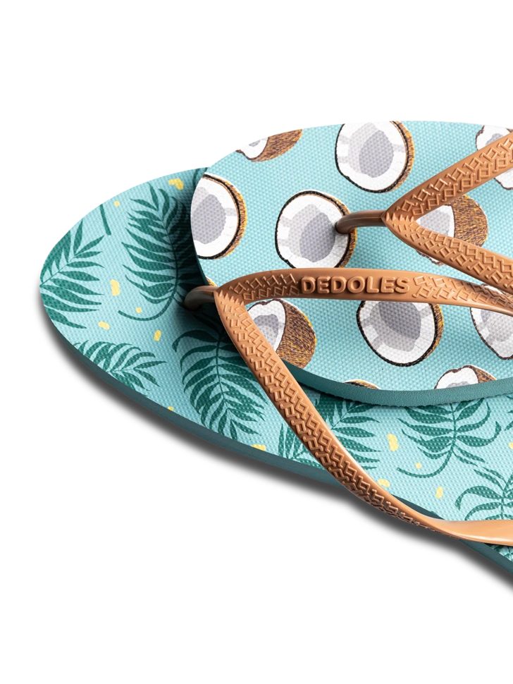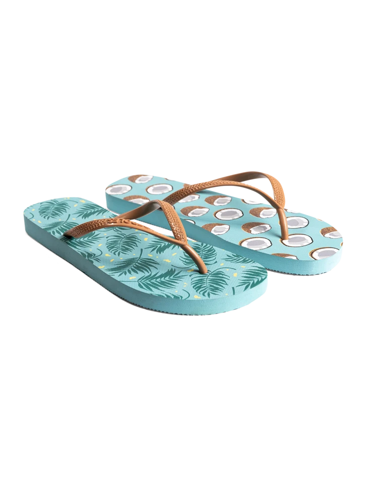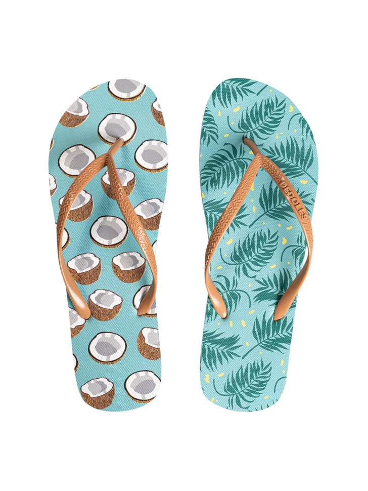 Die Kokosnuss ist prall gefüllt mit leckerem, erfrischendem Kokosnusswasser. Falls auch dein Sommer voller Wasser sein wird, dann sind diese lustigen Lustige Flip-Flops das neue Muss für dich.