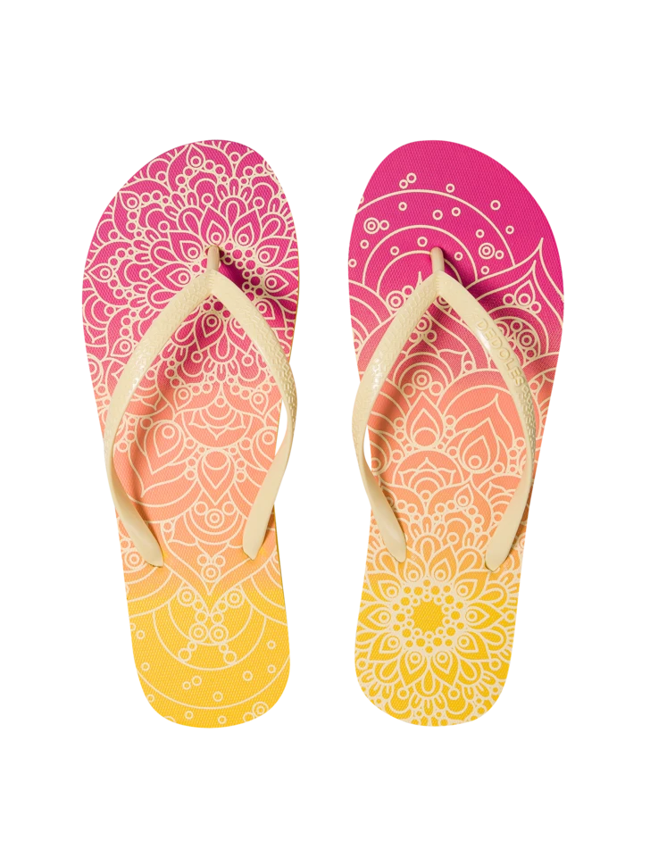 Das Mandala ist ein Symbol für Harmonie, Frieden und Energie. Wenn es ein sonniges Mandala ist, kann das nur eines bedeuten – Sommer! Für alle Fans von Sonne und Entspannung haben wir diese lustigen Flip-Flops mit sonnigem Mandala.