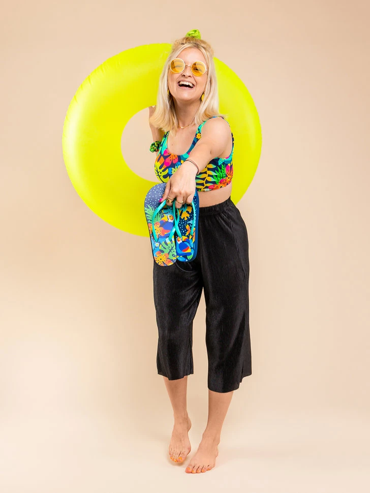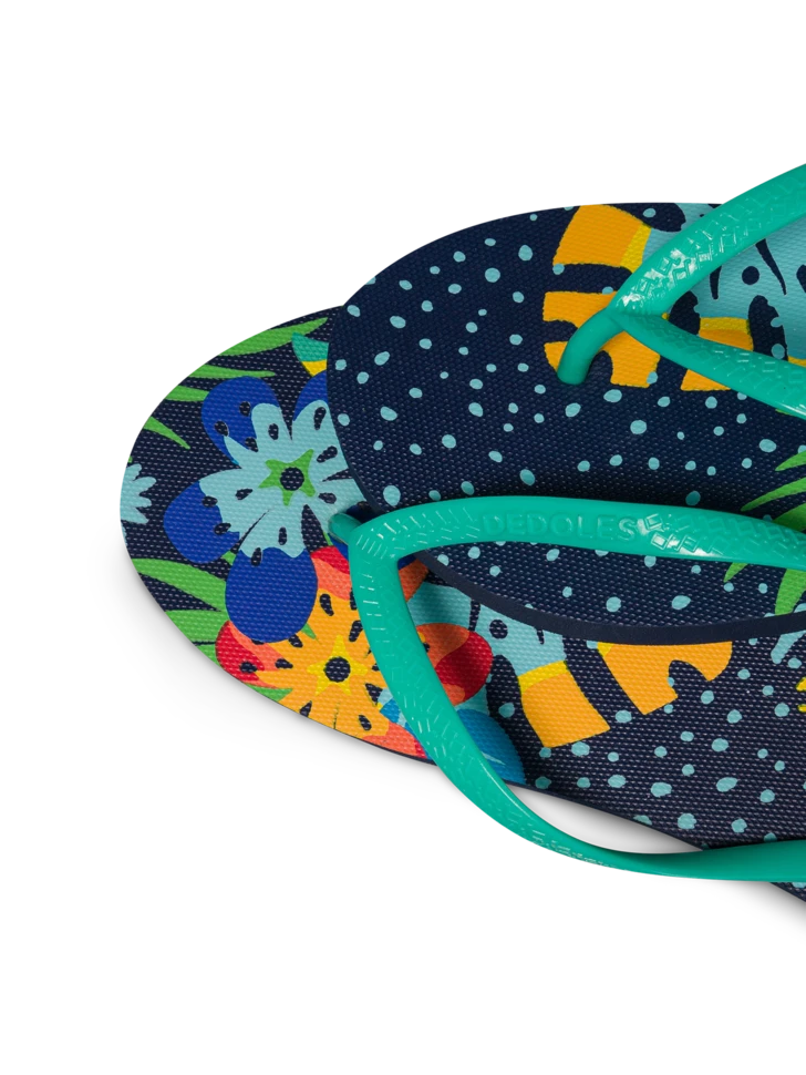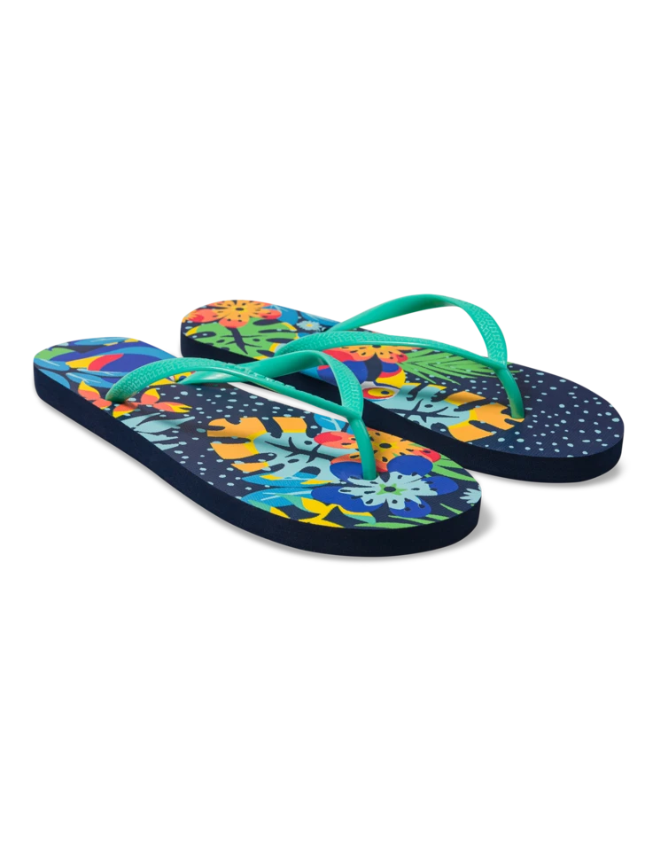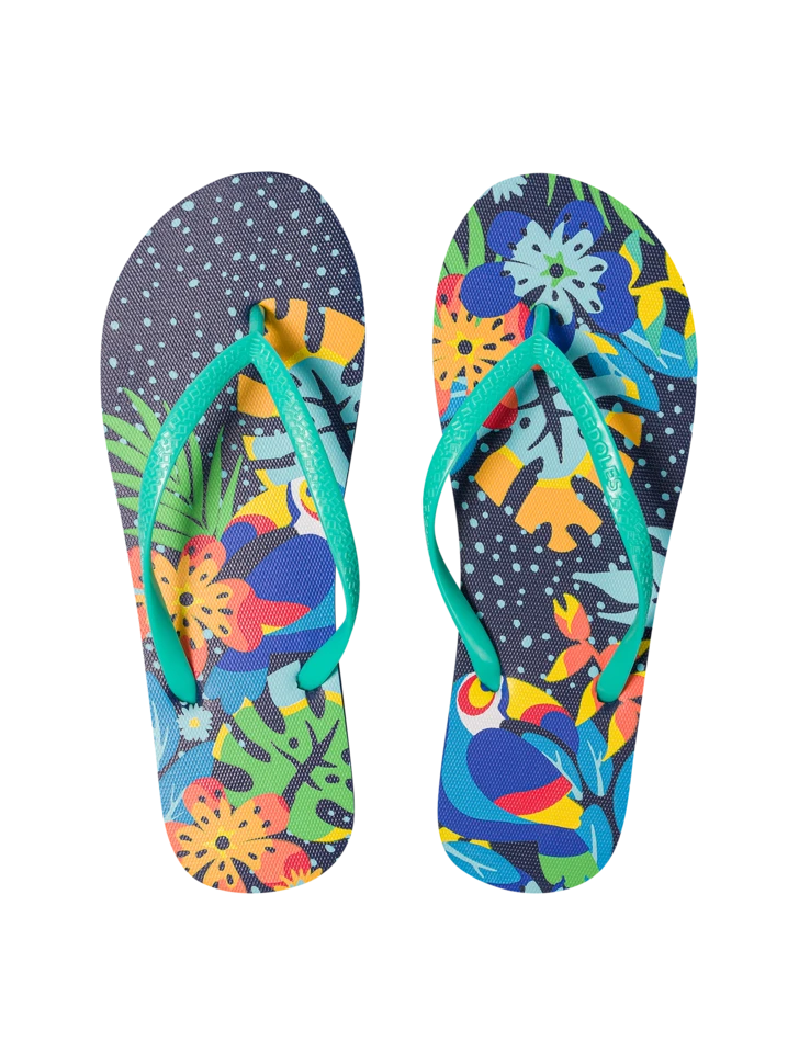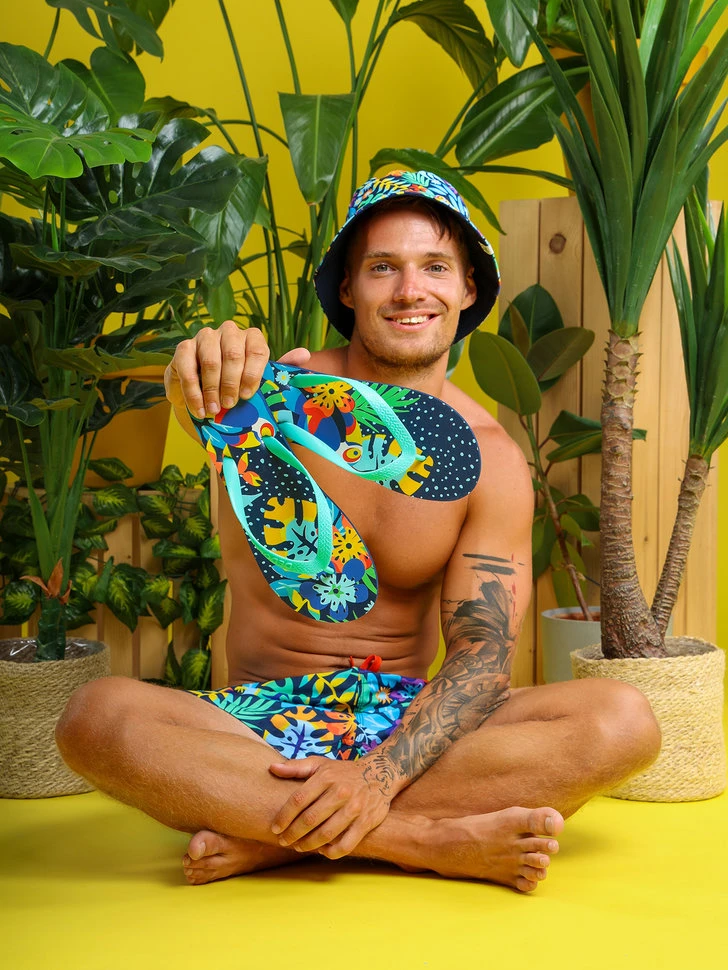 Der Tukan im Dschungel ist ein beliebtes Sommerdesign. Jetzt gibt es ihn auch auf unseren lustigen Flip-Flops. Der Vorteil ist, dass du dein Sommeroutfit mit deiner ganzen Familie zusammenstellen kannst. Sorge für Stil im Summer.