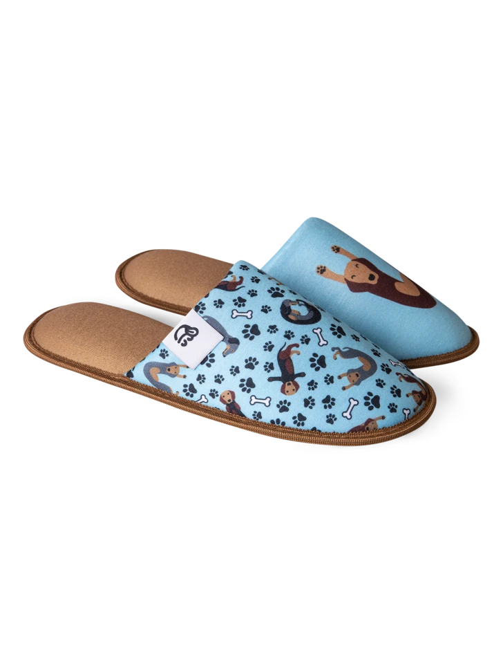 Wer liebt nicht die niedlichen kurzbeinigen Dackel. Diese wandelnden Würstchen zaubern ein Lächeln auf jedes Gesicht. Diese lustigen Hausschuhe mit Dackeln passen zu jedem Fuß, egal ob kurz oder lang.