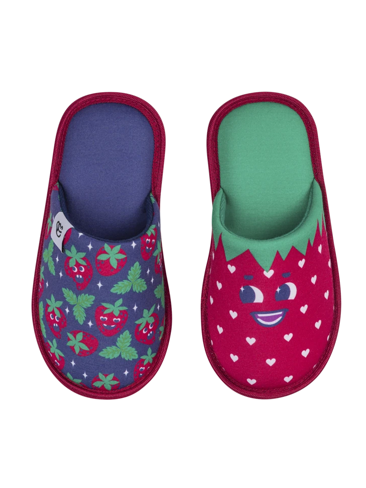 Süße Erdbeeren sind die beste Erfrischung an Sommertagen. Die Erdbeeren auf unseren fröhlichen Kinderhausschuhen wachsen nicht nur zu einer bestimmten Jahreszeit, sondern erfreuen die Kleinen das ganze Jahr über.