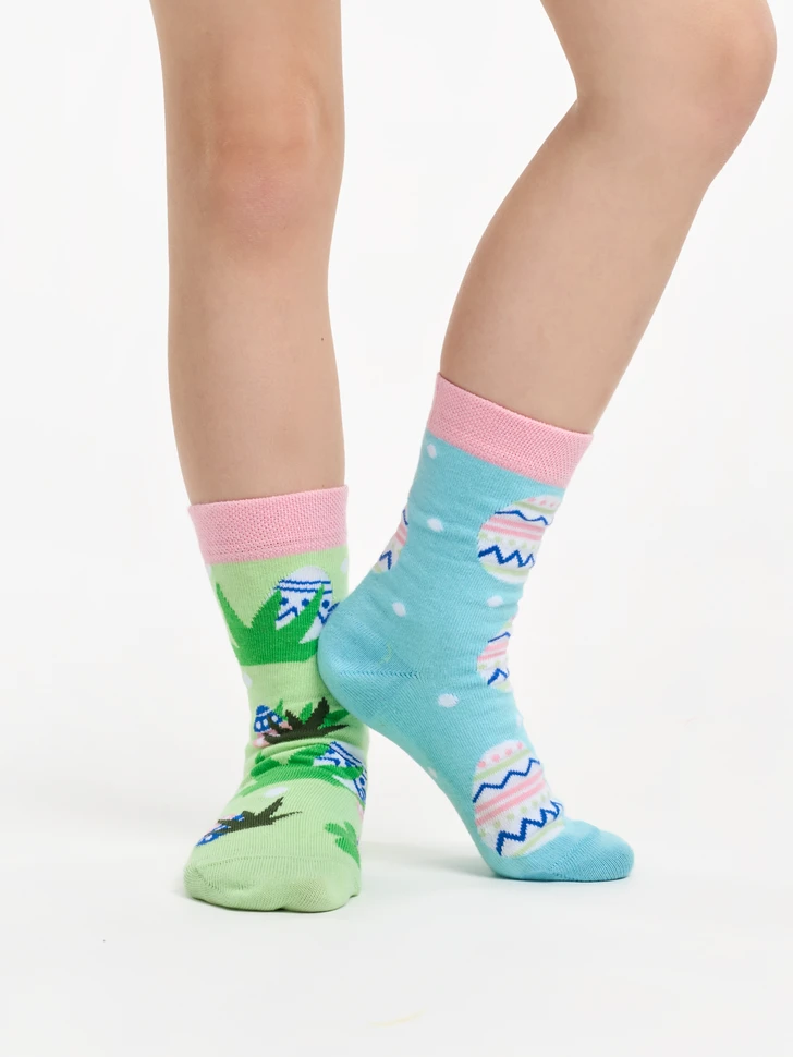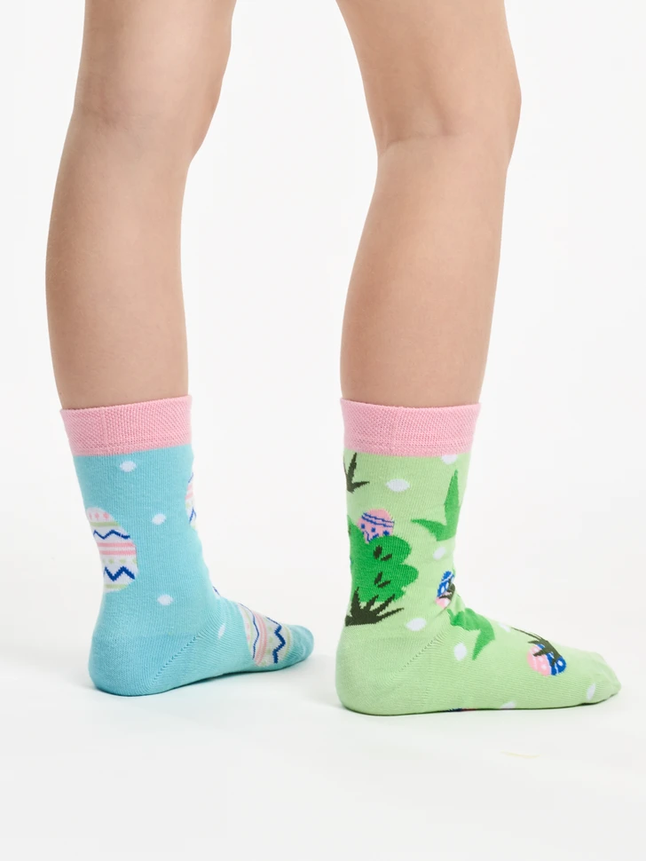 Millionen von Kindern auf der ganzen Welt jagen jedes Jahr bunten Eiern hinterher. Wie wäre es, wenn dein Kind anstelle von Eiern diese lustigen Kindersocken finden würde? Genieße Ostern gemeinsam mit guter Laune und gemütlichen Füßen.