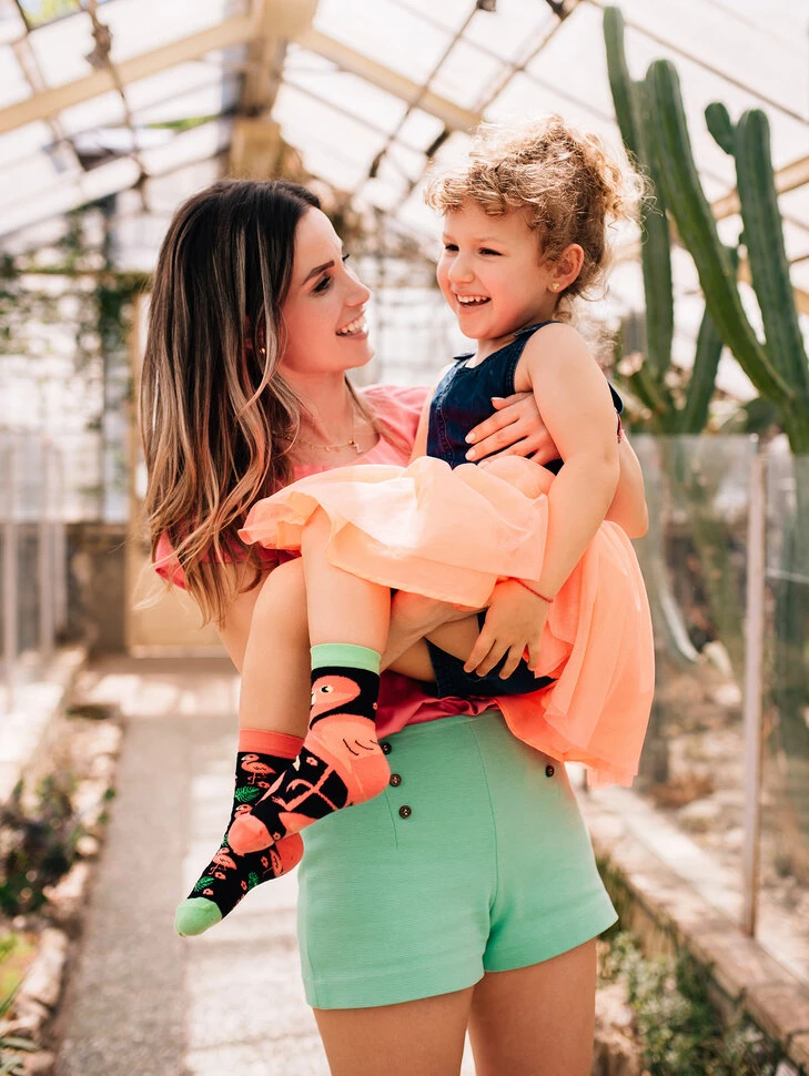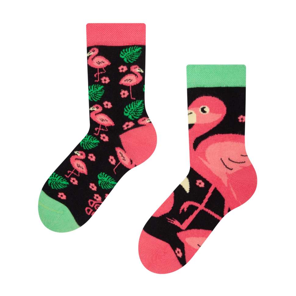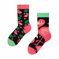 Was mögen Kinder? Tiere und die Farbe Rosa! Wie wäre es, wenn du ihnen ein rosa Tier schenkst? Der Flamingo auf diesen lustigen Kindersocken wird ihren Tag aufheitern.
