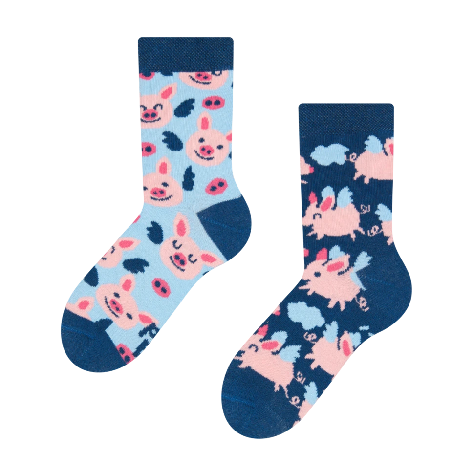 Glaubst du, dass der Traum aller Ferkel ist, einen Tag lang Flügel zu haben, in den Himmel zu fliegen und die Sterne anzuschauen? Dann können sie sich wenigstens mit diesen lustigen Kindersocken ihren Traum erfüllen.