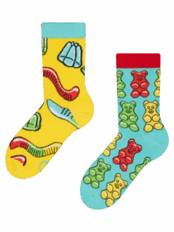 Wer hat behauptet, dass Süßigkeiten ungesund sind? Ganz sicher nicht die auf unseren lustigen Kindersocken! Wenn dein Kind Gummibärchen liebt, wird es auch unsere lustigen Kindersocken mit Gummibärchen lieben. Wunderschöne Farben werden ihren Tag sofort zum Strahlen bringen.