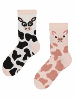 Weißt du, was eine Kuh und ein Schweinchen gemeinsam haben? Das ist definitiv die Tatsache, dass sie dich von unseren lustigen Kindersocken aus anlächeln. Sie werden den Tag deiner Kleinen im Handumdrehen verschönern.