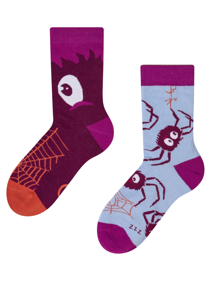 Spinnen müssen nicht furchterregend sein! Vertreibe deinem Kind die Angst mit diesen lustigen Kindersocken mit lustigen Spinnen darauf. Sie werden Spinnen sofort mit anderen Augen sehen.