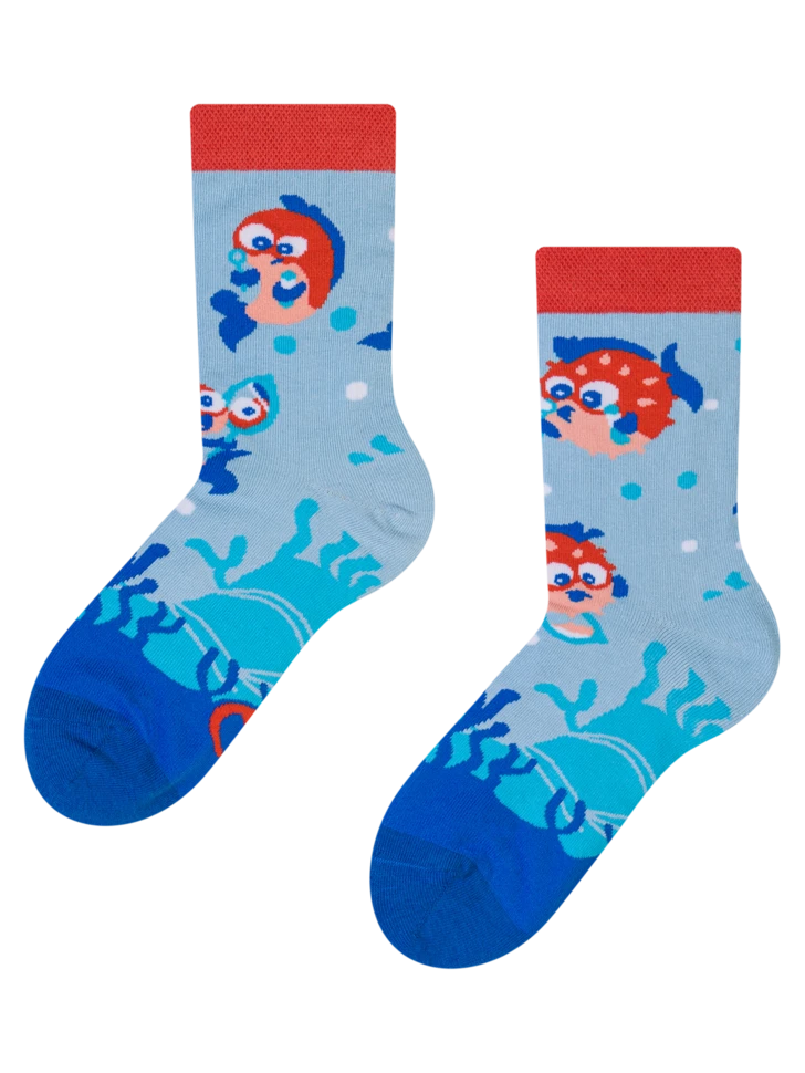 Der Kugelfisch sieht zwar wie ein süßer, schwimmender Ball aus, aber er ist eigentlich ziemlich gefährlich. Wenn auch an deinem Kind mehr dran ist, als man auf den ersten Blick vermuten würde, dann sind diese lustigen Kindersocken wie für ihn geschaffen.