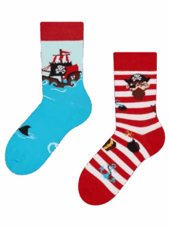 Wir wollten alle schon als Kinder einen Piratenschatz entdecken. Wenn du kleine Piraten zu Hause hast, besorge ihnen diese lustigen Kindersocken. Sie bringen ihren eigenen Schatz mit – Spaß und Freude!