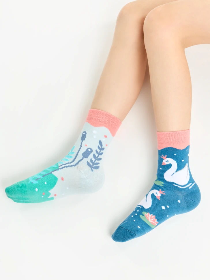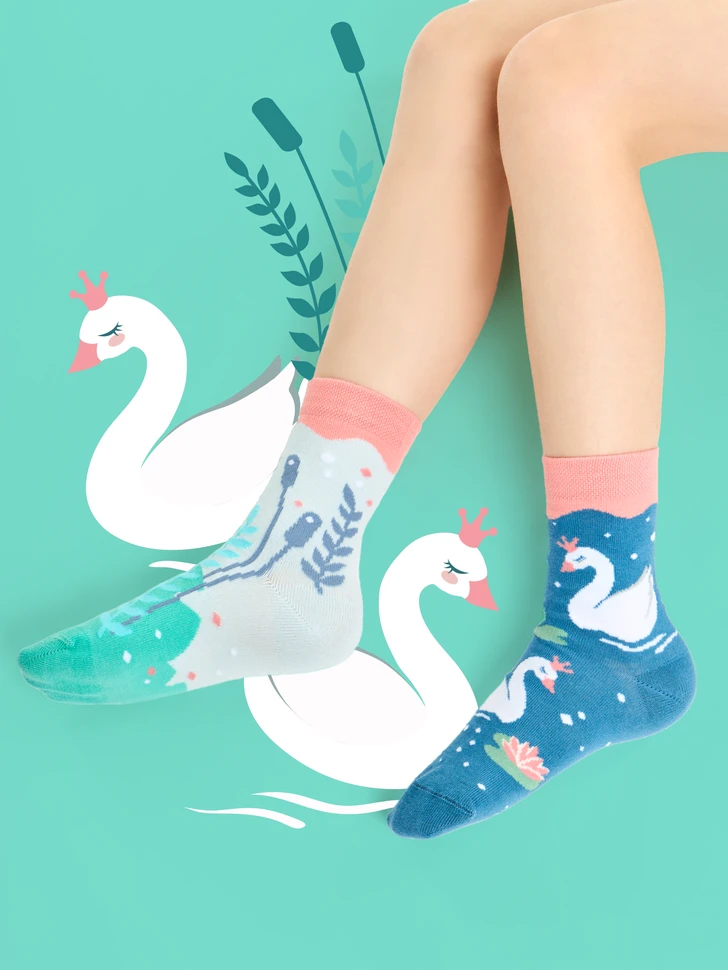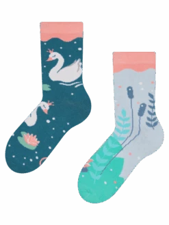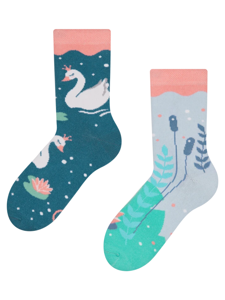 Der Schwan und seine Partnerin sind ein unzertrennliches Paar fürs Leben. Sollten unsere lustigen Kindersocken der treue Begleiter deiner Kleinen sein, dann besorge ihnen ein neues Paar dieser Socken mit Schwanmotiv und bringe ihren Tag zum Strahlen.