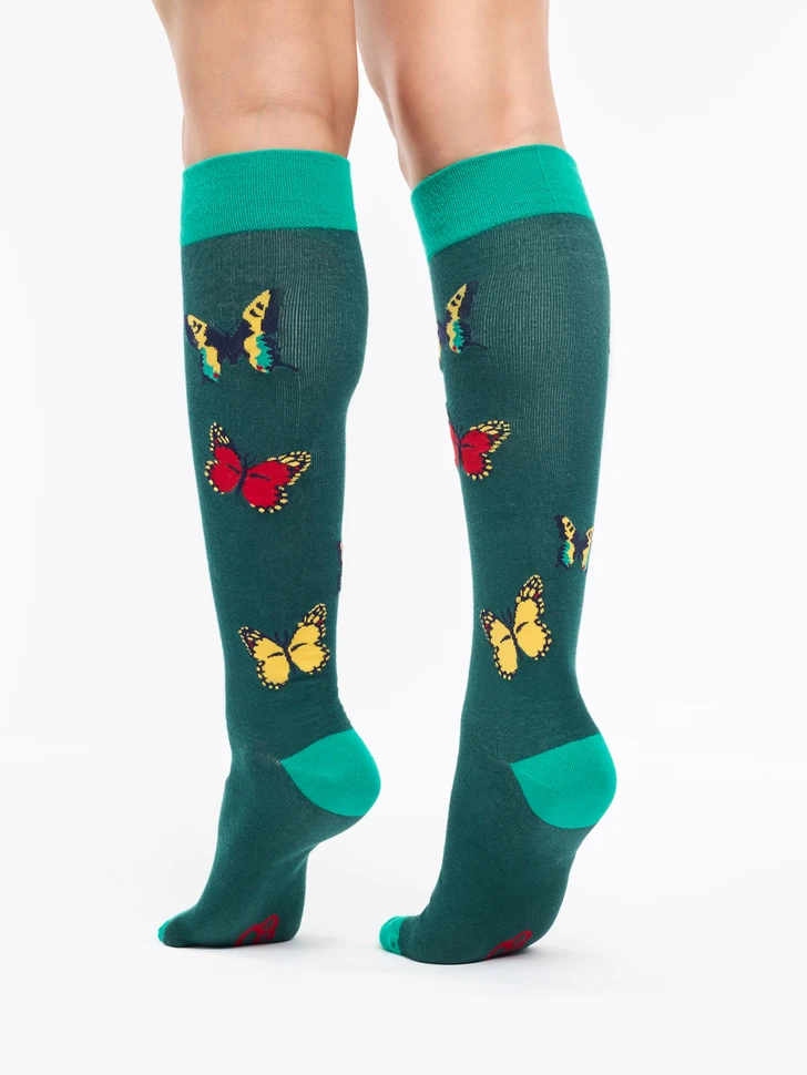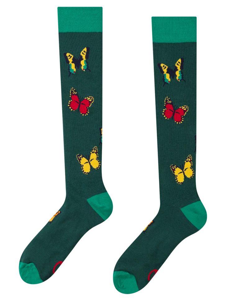 Gibt es etwas Schöneres als diese Schmetterlinge? Du natürlich, wenn du unsere lustigen Kniesocken anziehst! Bringe deine Outfits mit einem originellen Stück zum Strahlen – passend zu jedem Wetter.