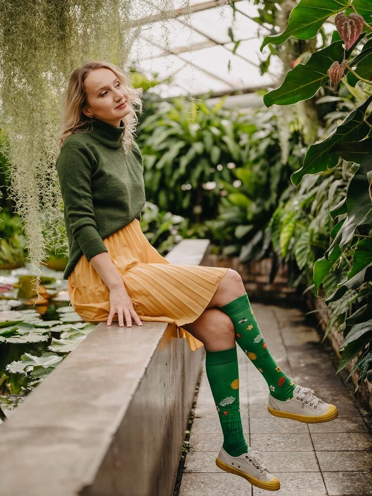 Wenn du Blumen liebst, solltest du sie nicht pflücken. Trage stattdessen die lustigen Kniesocken mit Blumenmuster! Diese Blumen blühen ständig, und das bedeutet, dass sie dir noch sehr lange Freude bereiten werden!