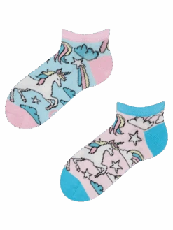 Jedes Kind träumt davon, den Topf voller Gold am Ende des Regenbogens zu finden. Das magische Einhorn auf diesen lustigen Knöchelsocken für Kinder könnte ihnen bei der Suche helfen! Unsere Kindersocken bringen ihren eigenen Schatz mit – Spaß und Freude!