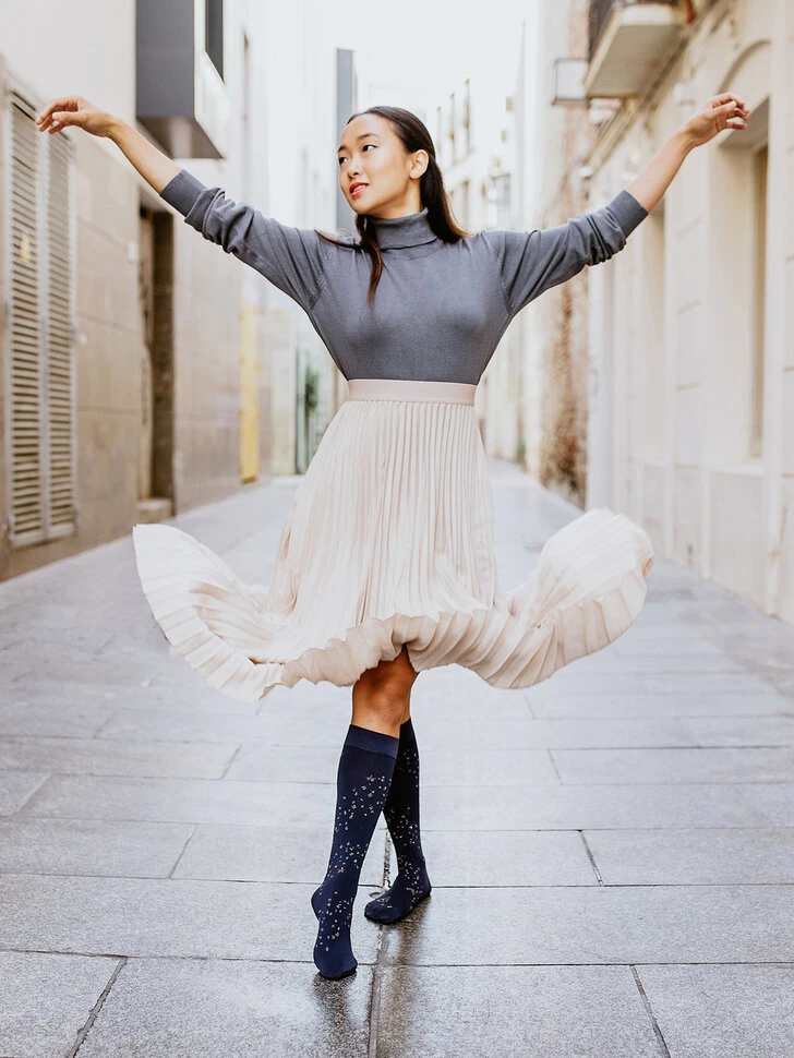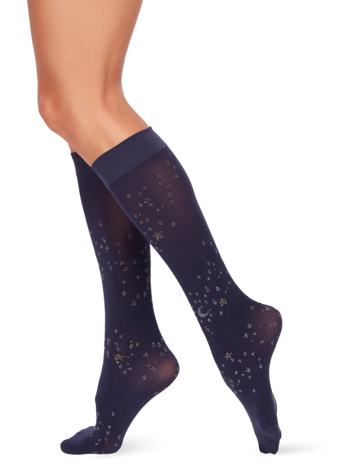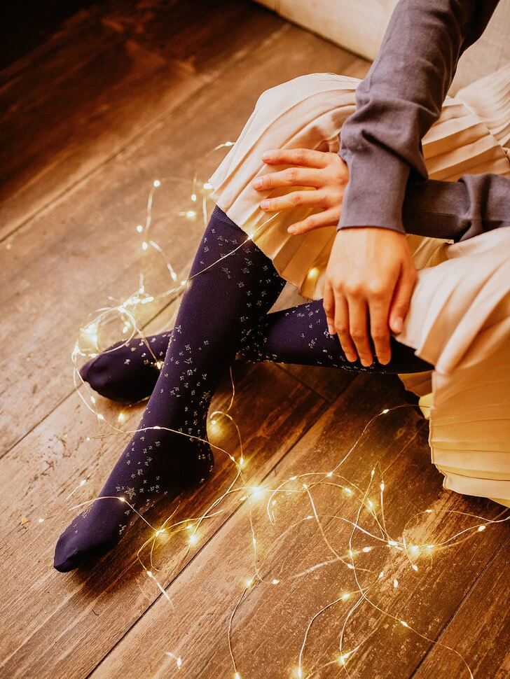 Romantisches Date unter einem Sternenhimmel? Sorge mit unseren Nylonkniesocken für noch mehr Magie. Zieh sie an und du wirst sehen, dass sie deinen Tag im Nu zum Strahlen bringen werden.