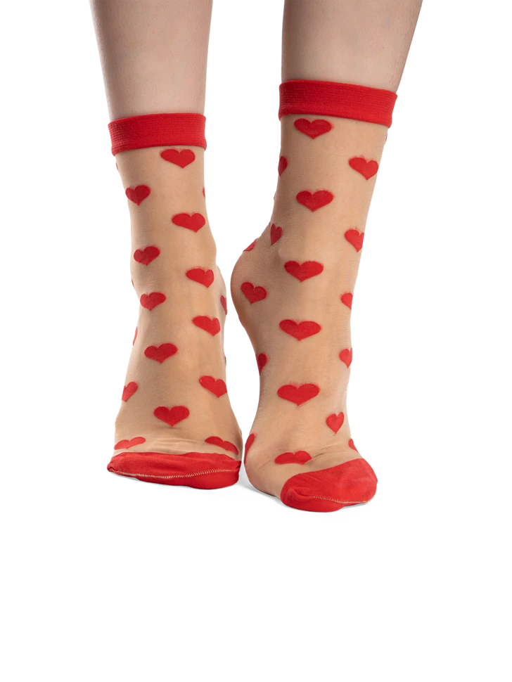 Wenn du ehrlich bist und offen deine Emotionen zeigst, dann sagt man, dass du dein Herz auf der Zunge trägst. Aber was hat das zu bedeuten, wenn jemand sein Herz an den Füßen trägt? Es bedeutet wahrscheinlich, dass sie unsere fröhlichen Nylonsocken mit roten Herzen tragen.