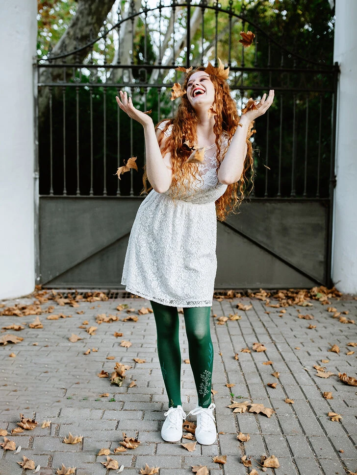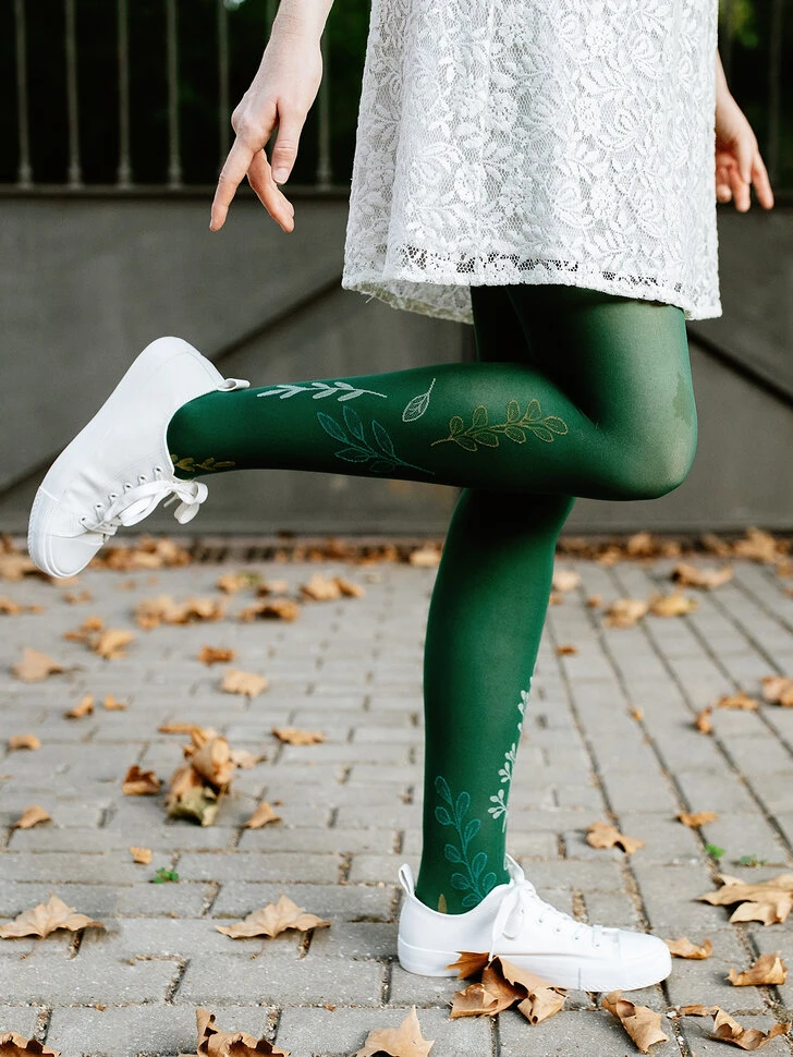 Die Herbstblätter fallen, aber die Stimmung wird besser. Wie kann das sein? Das ist das Verdienst dieser lustigen Nylonstrumpfhosen, die von Herbstblättern inspiriert sind. Sie werden dir ein Lächeln ins Gesicht zaubern und alle deine Herbstoutfits zum Strahlen bringen.