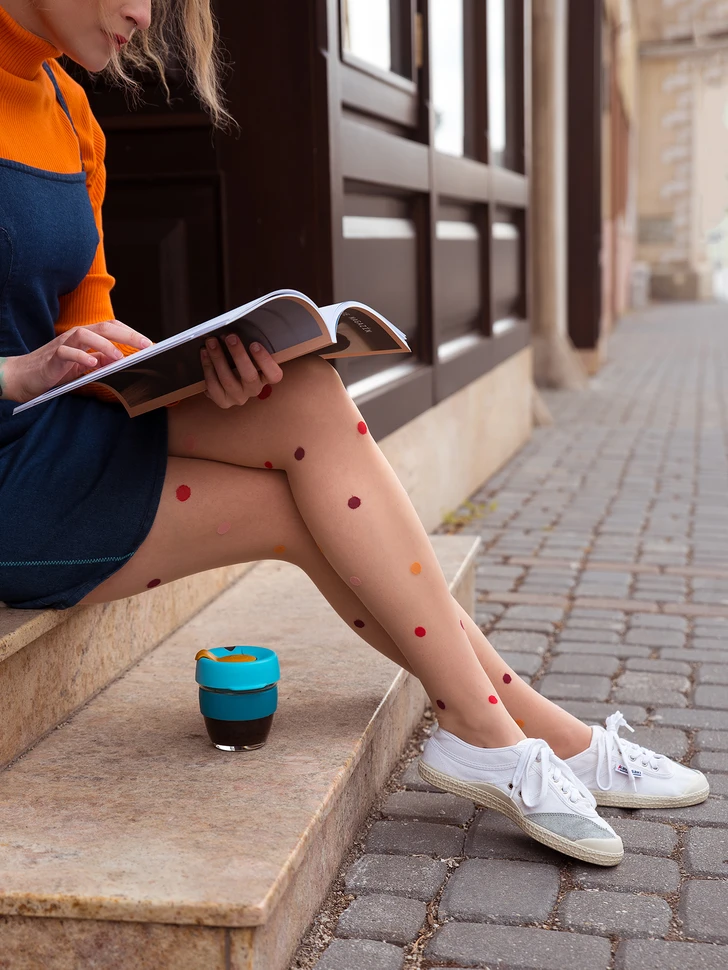 Punkte sind seit über hundert Jahren in Mode. Zieh diese lustigen Nylonstrumpfhosen an und lass diesen zeitlosen Modehit deinen Tag aufheitern.