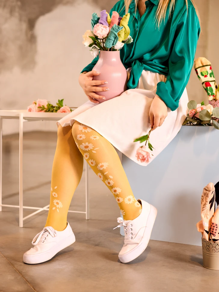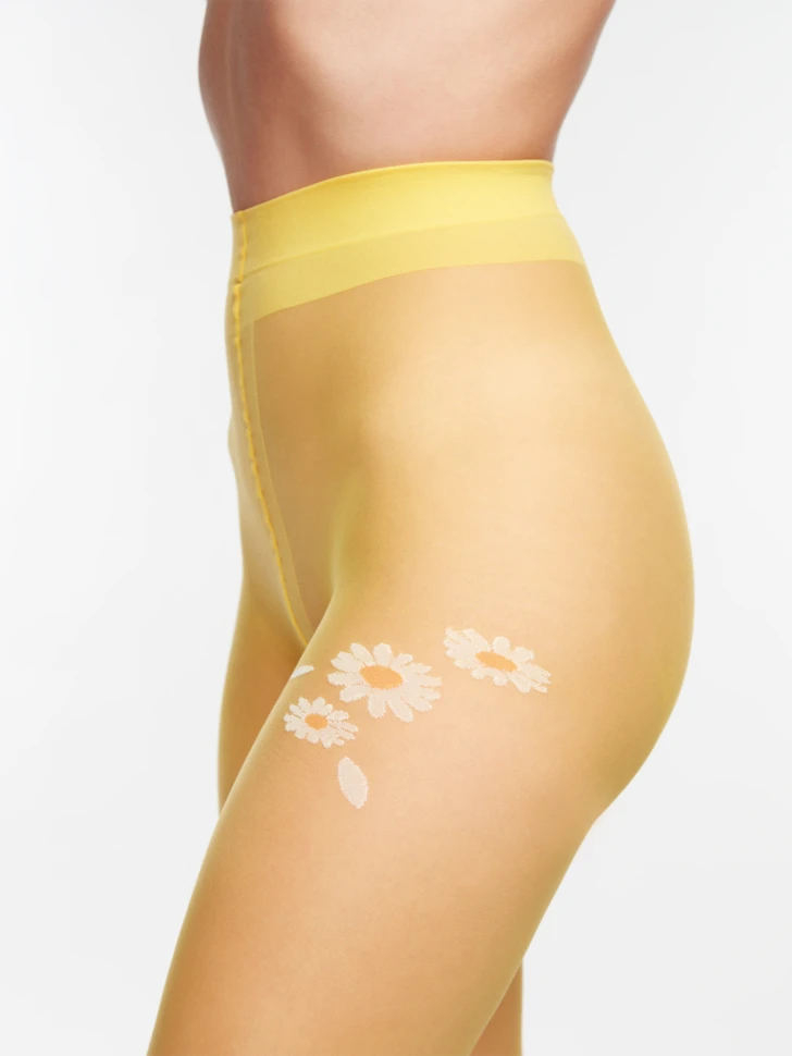 Er liebt mich, er liebt mich nicht. Was kommt dir als erstes in den Sinn, wenn du ein Gänseblümchen siehst? Ziehe diese lustigen Nylonstrumpfhosen mit einem hübschen Blumenaufdruck an und stelle deine Zärtlichkeit und Schönheit zur Schau – genauso wie ein Gänseblümchen.