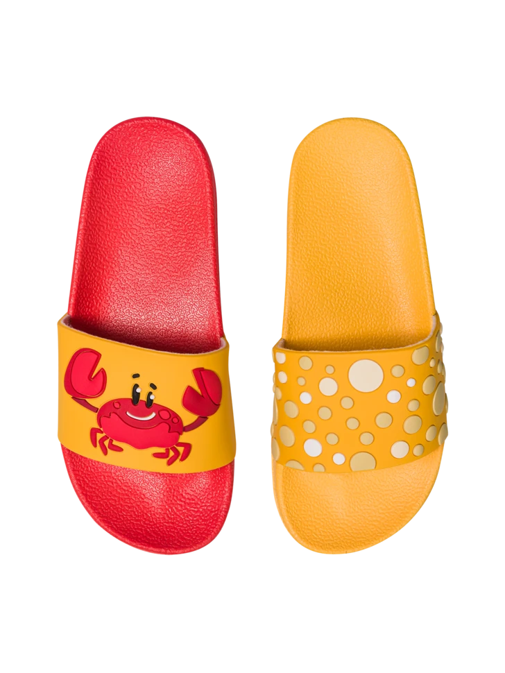 Auch wenn dein Kind Angst vor Krabben hat, werden die Krabben auf unseren lustigen Pantoletten für Kinder ihm bestimmt nichts Böses anhaben. Ganz im Gegenteil, sie werden ihn zum Lachen bringen!