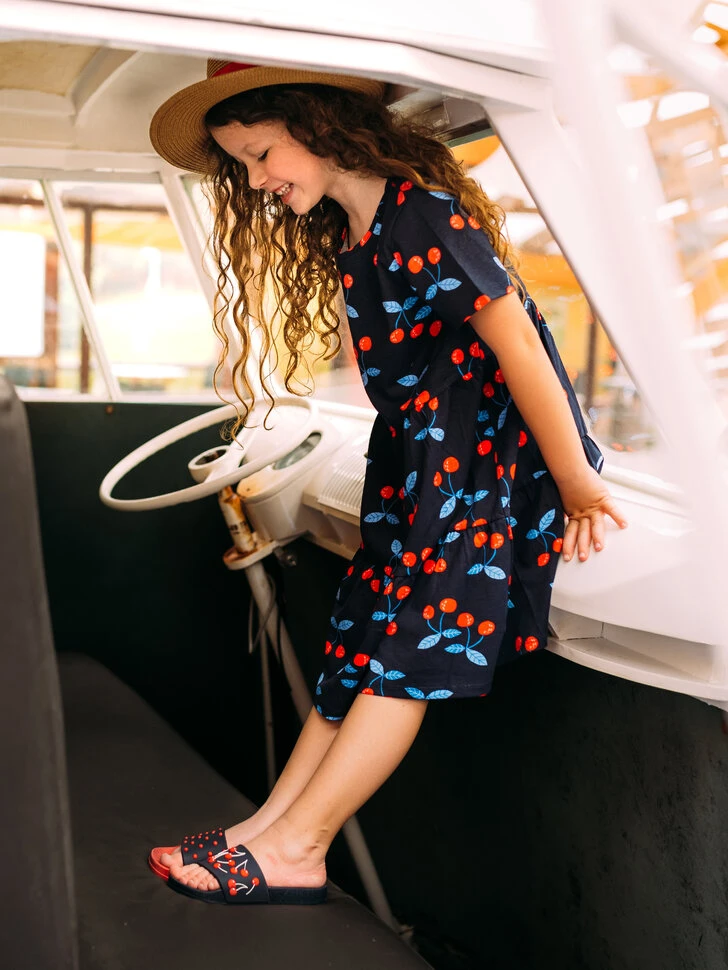 Wusstest du, dass es weltweit mehr als 200 Kirschensorten gibt? Diese mit Kirschen bestückten lustigen Pantoletten für Kinder findest du allerdings nur an einem Ort. Hier bei Dedoles!