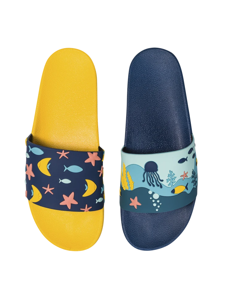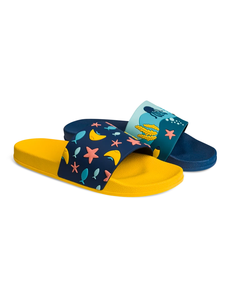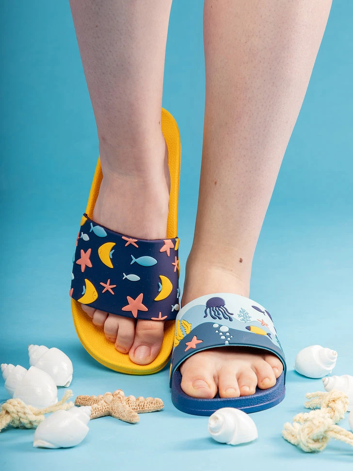 Tauche mit den lustigen Pantoletten in die geheimnisvolle Welt der Korallen ein! Sie passen wie angegossen, sind rutschfest und bringen sofort gute Laune in den Tag.