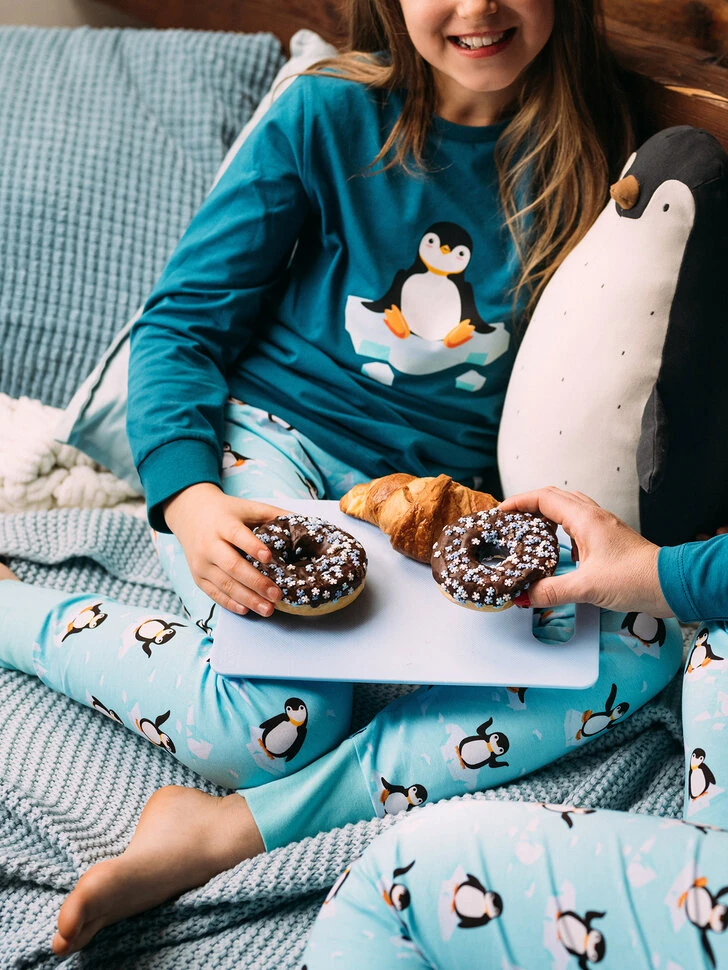 Es gibt nichts Niedlicheres als einen tanzenden Pinguin. Ziehe deinen Kleinen unsere lustigen Pyjamas für Kinder an und wir versprechen dir, dass der Pinguin ihnen beim Aufwachen sofort ein Lächeln aufs Gesicht zaubern wird.
