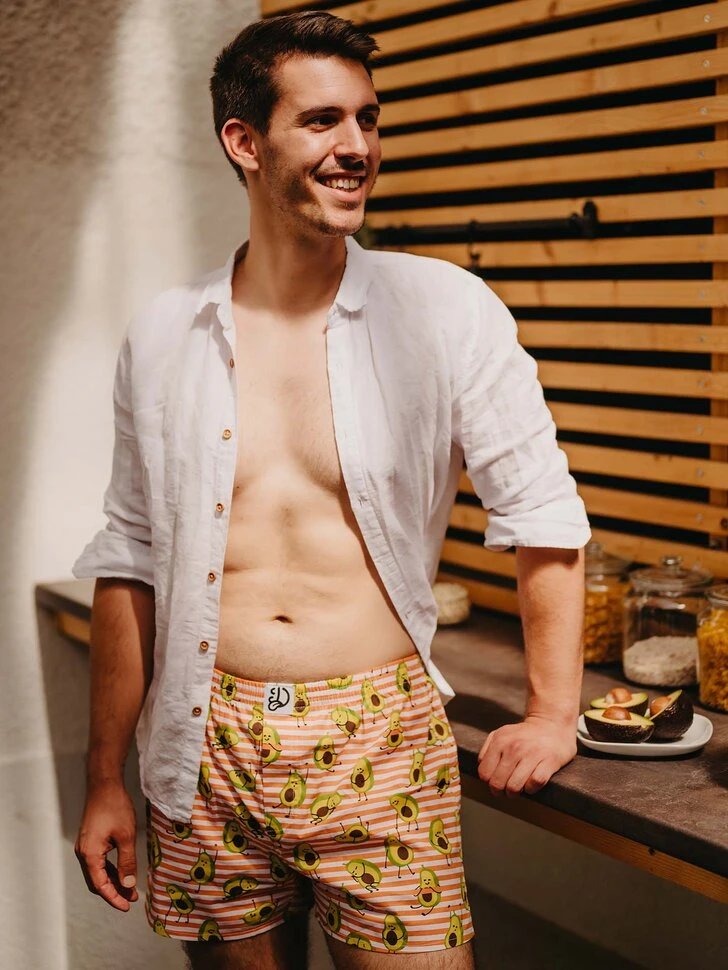 Schaffst du es nicht, genug Obst und Gemüse zu essen? Schlüpfe in diese lustigen Shorts für Männer und du wirst sehen, dass gesundes Essen auch Spaß machen kann!